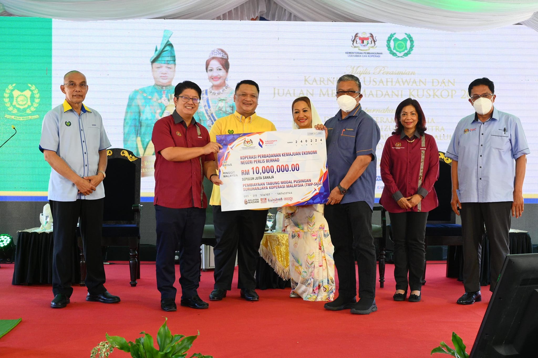 DYTM Tuanku Raja Muda Perlis telah berkenan merasmikan program ini dan menyaksikan penyampaian cek bantuan pembangunan dan pembiayaan oleh agensi terbabit kepada usahawan dan koperasi yang layak di Negeri Perlis.