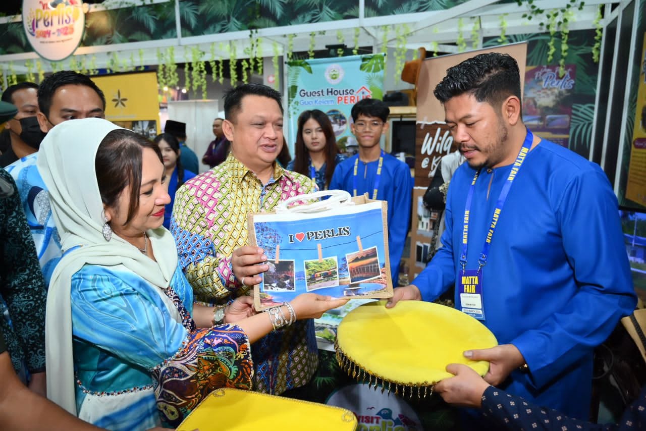 DYTM Raja Muda Perlis Tuanku Syed Faizuddin Putra Ibni Tuanku Syed Sirajuddin Jamalullail, dan DYTM Raja Puan Muda Perlis Tuanku Dr. Hajah Lailatul Shahreen Akashah Khalil, telah berkenan berangkat ke Majlis Menandatangani MOU di antara Syarikat Harumango dan Smart Leisure Travel serta Antar Holiday.