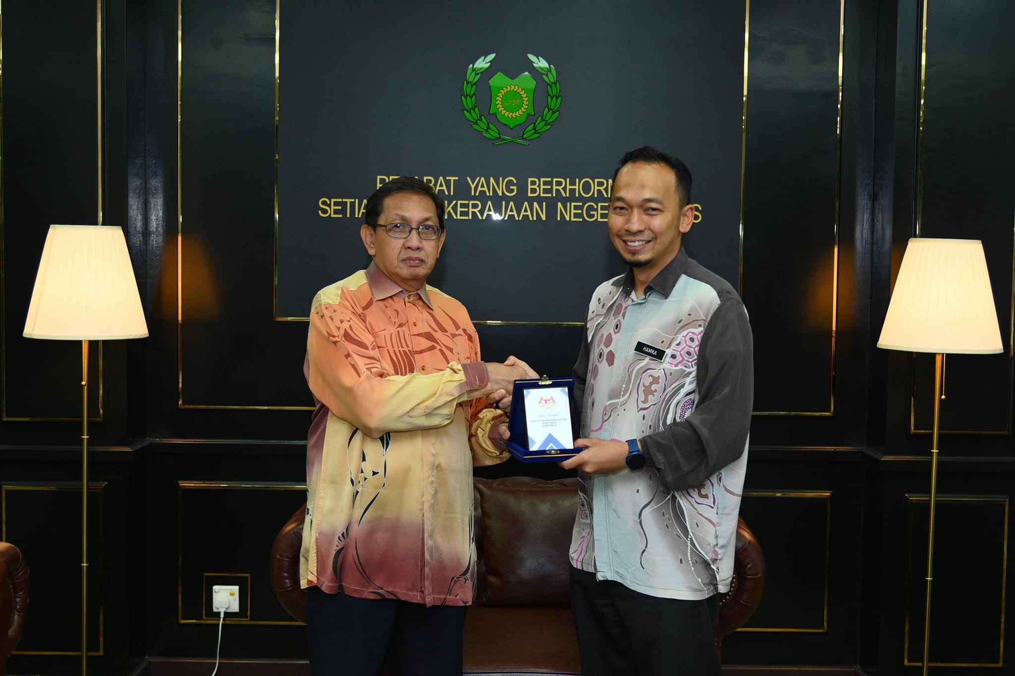 YB Datuk Muhd Khair Razman bin Mohamed Annuar, Setiausaha Kerajaan Negeri Perlis telah menerima kunjungan hormat daripada YBrs. Encik Hamka bin Ismail, Pengarah, Jabatan Perangkaan Negeri Perlis.