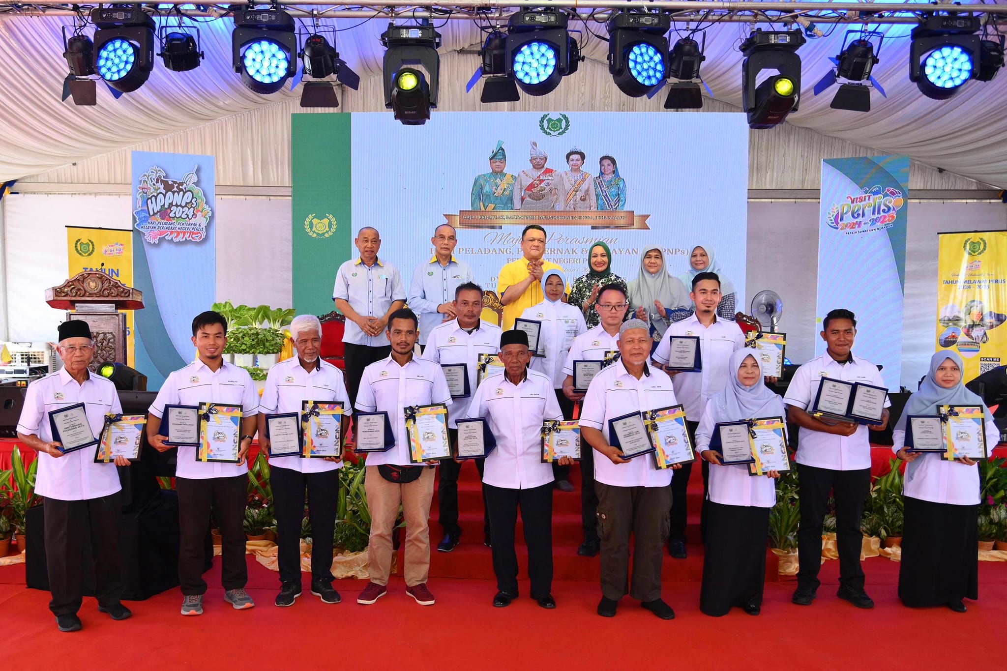 DYMM Tuanku Pemangku Raja Perlis telah berkenan menyempurnakan simbolik perasmian Sambutan Hari Peladang, Penternak dan Nelayan Peringkat Negeri Perlis Bagi Tahun 2024. DYMM Tuanku Pemangku Raja Perlis turut mengurniakan hadiah kepada pemenang Anugerah bagi HPPNs peringkat Negeri Perlis. DYMM Tuanku Pemangku Raja Perlis dan DYTM Tuanku Raja Puan Muda Perlis telah berangkat melawat ke Booth/ Pameran Jabatan serta Agensi yang terlibat