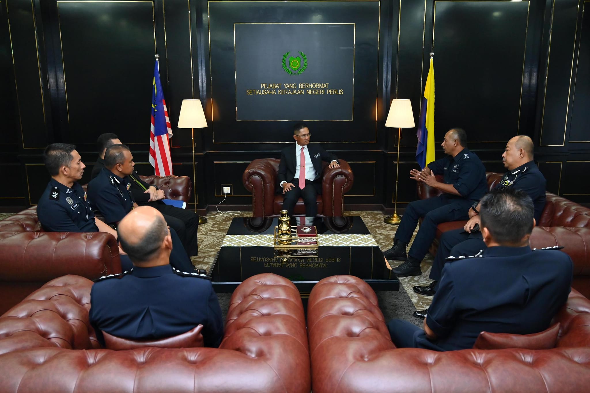 YB Dato’ Rahimi bin Ismail, Setiausaha Kerajaan Negeri Perlis telah menerima kunjungan hormat daripada YDH DCP Dato’ Muhammad bin Abdul Halim, Ketua Polis Perlis.