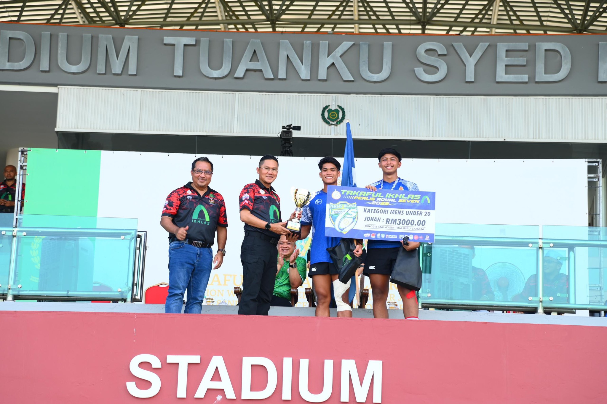 Turut hadir bersama YB Dato' Rahimi bin Ismail, Setiausaha Kerajaan Negeri Perlis, YB Tuan Mohd Ridzuan bin Hashim, Ahli Majlis Mesyuarat Kerajaan Negeri Perlis (Belia dan Sukan), YBhg. Dato’ Rudy Rodzila Che Lamin, Interim Presiden MNRB Holdings Berhad dan Presiden & Ketua Pegawai Eksekutif Takaful IKHLAS General Berhad, Encik Mohd Azraai bin Tusimin, Pengarah Majlis Sukan Negeri Perlis dan Encik Mohd Hafiz bin Zainon, Pengarah Kejohanan Perlis Royal Seven 2025.