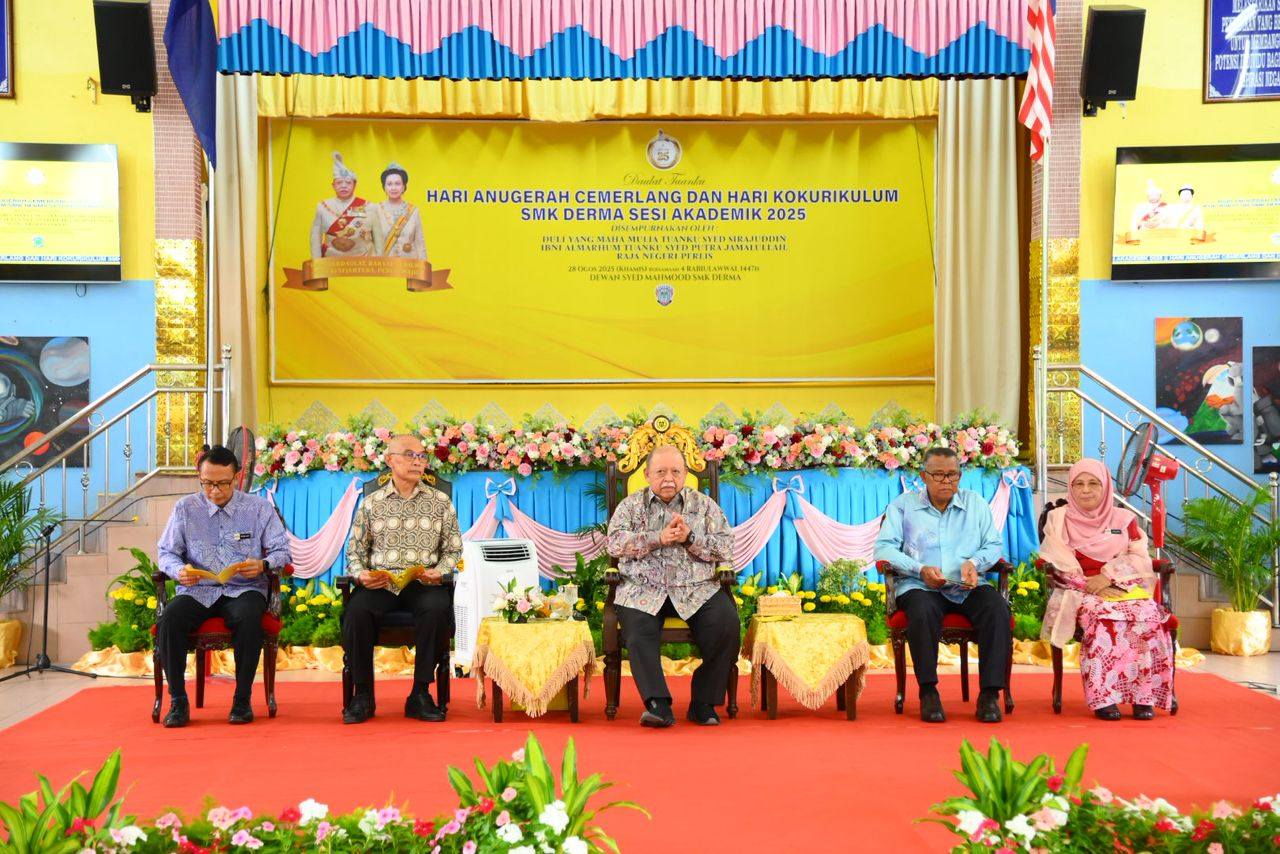 DYMM Tuanku Syed Sirajuddin Ibni Almarhum Tuanku Syed Putra Jamalullail Raja Perlis telah berkenan berangkat ke Hari Anugerah Cemerlang dan Hari Kokurikulum SMK Derma Sesi Akademik 2025 bertempat di Dewan Syed Mahmood SMK Derma, Kangar, Perlis.